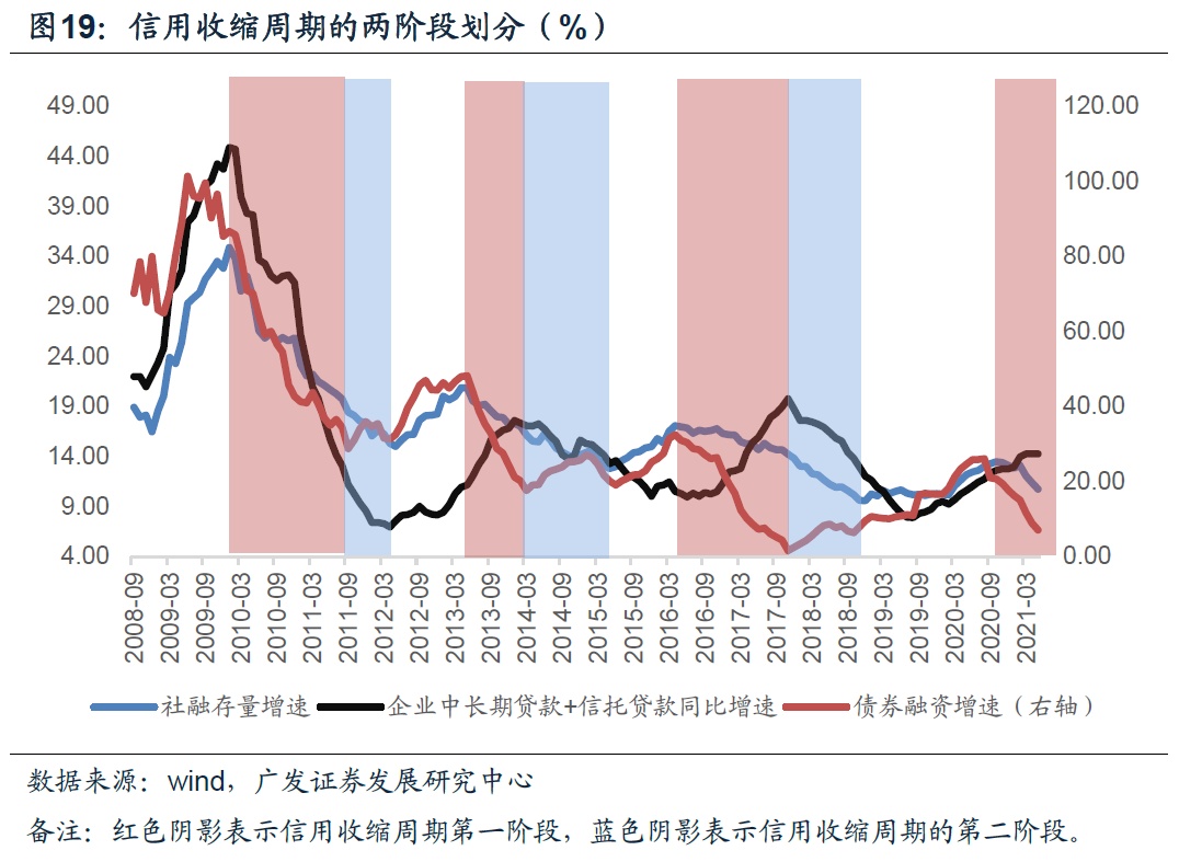 从持续过程来看,过去三轮信用收缩周期都可分为两个阶段。