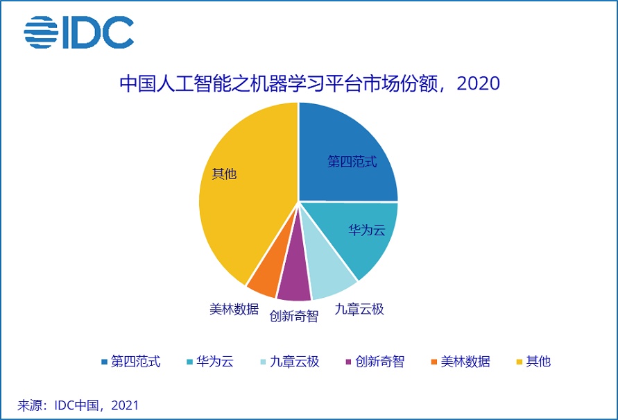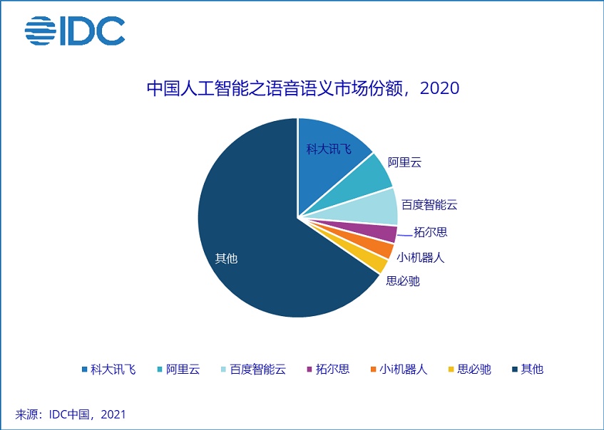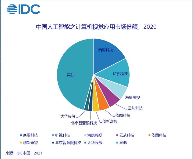 下面是2020年中国人工智能各市场板块关键厂商市场份额表现如下: