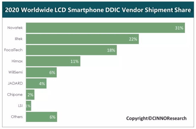 智通财经APP获悉,根据CINNO Research数据显示,2020年全球显示驱动芯片需求量为82亿颗,较2019年增长8.7%,其中智能手机TFT-LCD面板驱动芯片需求量为14亿颗,占整体显示驱动芯片需求量的17%。