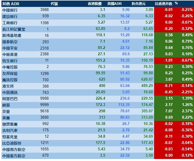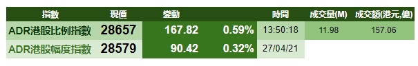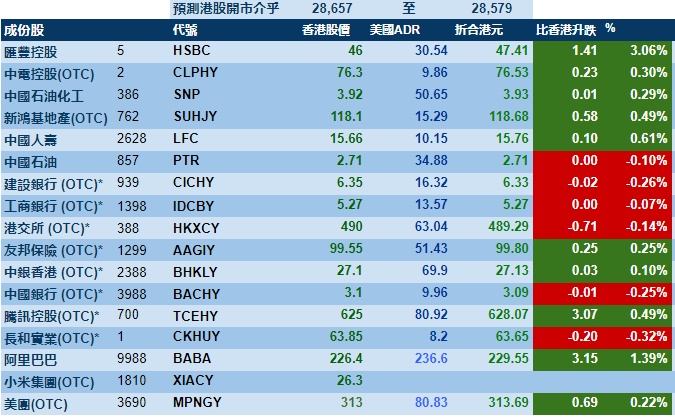 智通财经APP获悉,周一美股三大指数收涨,港股ADR指数上涨,按比例计算,收报28657点,涨167.82点或0.59%。