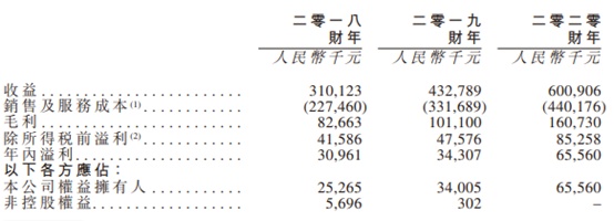 2018-2020年,朗诗绿色生活的收入分别为3.1亿元(单位:人民币,下同)、4.33亿元和6.01亿元。年内利润分别为3096.1万元、3430.7万元和6556万元。