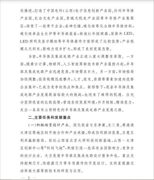 智通财经APP获悉,日前,山西省出台了《关于促进半导体产业高质量发展引导集成电路产业健康发展的指导意见》山西省将以晋中、吕梁、长治为重点,整合提升硅片等光伏制造产业链和配套体系,打造光伏制造全产业链生态体系。《意见》提出了山西今后的主要任务和发展重点,将积极培育设计产业,依托山西省北京大学科技创新基地、山西——大湾区创新中心等“科创飞地”,大力发展半导体及集成电路设计服务外包。