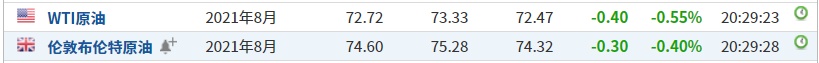 截至发稿,WTI原油跌0.55%,报72.72美元/桶。布伦特原油跌0.40%,报74.60美元/桶。