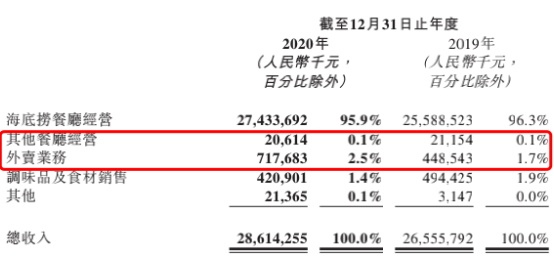 虽然四处出击,但看上去海底捞想要打造第二增长曲线并不容易。2020年,公司来自于海底捞以外餐厅以及外卖服务的收入,合计不足3%,与主业相比实在有些微不足道。
