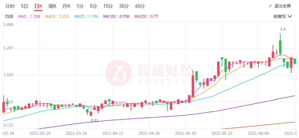 与此同时,与业绩共同爆发的还有庄臣控股的股价。据悉,自2021年以来,该公司的股价便开始一路走高,截止发稿时间其股价报于1.2港元,累涨近70%。