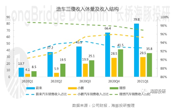 再来单独关注一下三傻的非汽车销售收入情况,海豚君认为其核心驱动虽然和当季交付量有关系,但长期来看主要依赖于存量车和商业模式的变现能力。