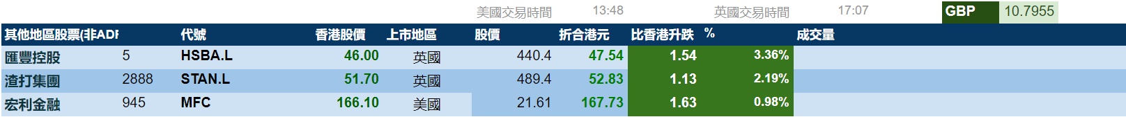 大型蓝筹股多数上涨,汇丰控股收报47.71港元,较港收市跌0.08%;腾讯控股收报628.08港元,较港收市涨0.49%。