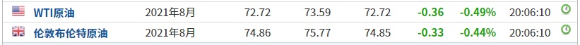 截至发稿,WTI原油跌0.49%,报72.72美元/桶。布伦特原油跌0.44%,报74.86美元/桶。