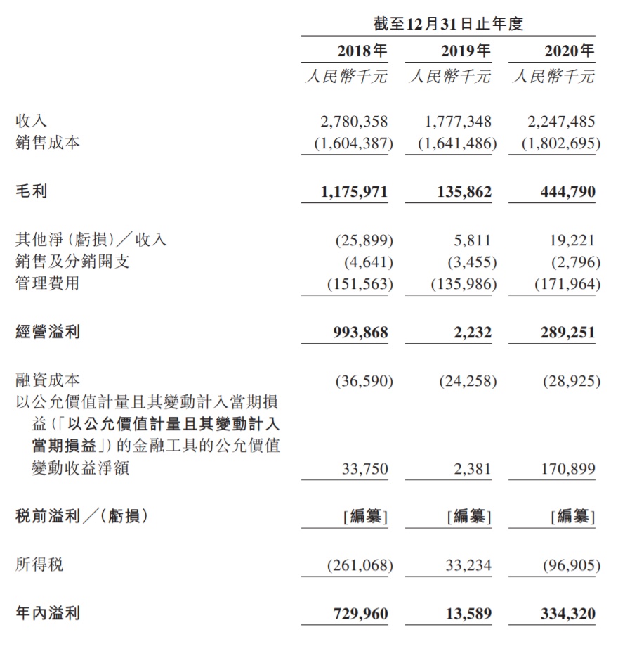 财务方面,寒锐钴业的业务收入及净利润波动显著。于2018年至2020年度,收入分别为27.8亿元(人民币,下同)、17.78亿元、22.47亿元;毛利率分别为42.3%、7.6%、19.8%;净利润分别为7.3亿元、1358.9万元、3.34亿元。