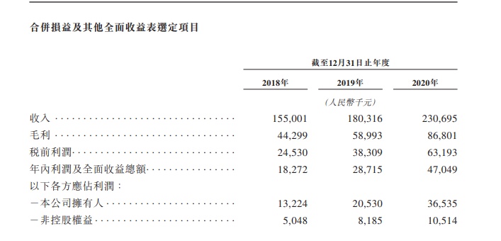公司的收入由2018年的人民币1.55亿元增加至2020年的人民币2.307亿元,复合年增长率约为22.0%。公司的毛利由2018年的人民币4430万元增加至2020年的人民币8680万元,复合年增长率约为40.0%。公司的净利润由2018年的人民币1830万元增加至2020年的人民币4705万元,复合年增长率约为60.3%。公司在管物业的总建筑面积由截至2018年12月31日的约910万平方米增加至截至2019年12月31日的950万平方米,并进一步增加至截至2020年12月31日的1080万平方米,复合年增长率为8.9%。
