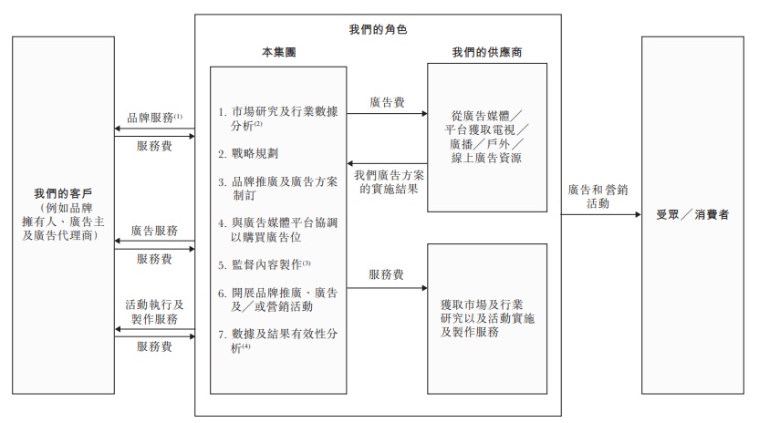 以下为公司向客户提供综合性品牌、广告和营销方案服务的业务模式: