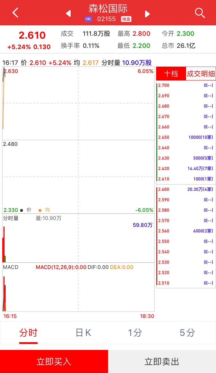 智通财经APP获悉,森松国际(02155)将于6月25日(星期五)在香港挂牌。截至发稿,利弗莫尔证券暗盘交易显示报价2.61港元,较招股价2.48港元涨5.24%。每手1000股,不计手续费,每手赚130港元。