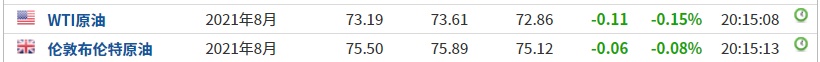 截至发稿,WTI原油跌0.15%,报73.19美元/桶。布伦特原油跌0.08%,报75.50美元/桶。