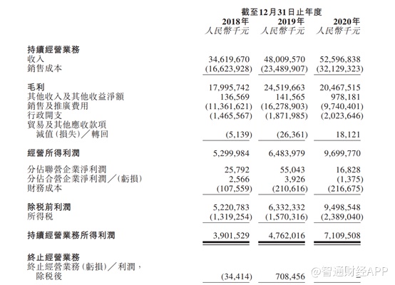 招股书显示,中国中免2018年至2020年,营业收入分别为346.20亿元,480.10亿元以及525.97亿元,年复合增长率23.25%。同期净利润分别为39.02亿元,47.62亿元以及71.20亿元,年复合增长率达到35.08%。