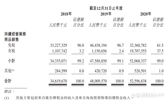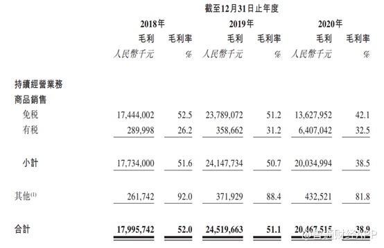 由于线上业务的快速发展,有税商品销售占比也从2019年的2.4%大幅提升至2020年的37.4%。
