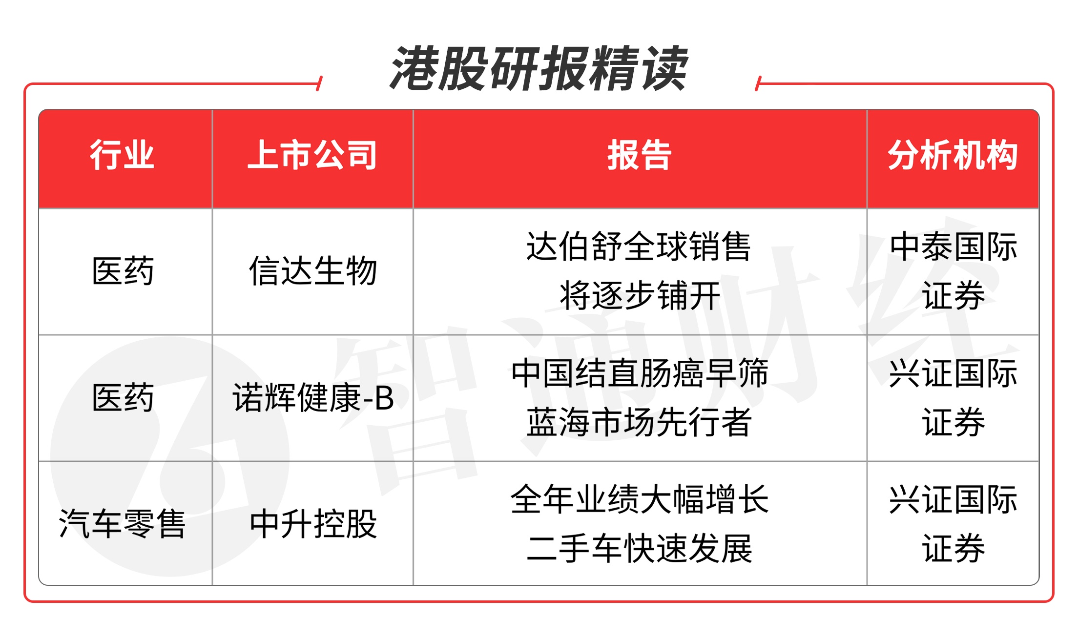 本期重点选择分析师看好的医药板块和汽车板块重点品种。