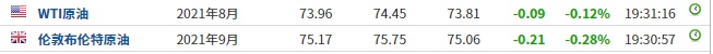 截至发稿,WTI原油跌0.12%,报73.96美元/桶。布伦特原油跌0.28%,报75.17美元/桶。
