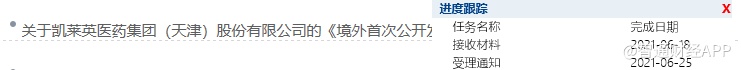中国证监会政务服务平台显示凯莱英提交的申请已受理。