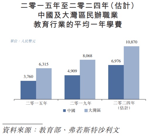 而从华南职业教育的收费情况来看,2019年时大专课程的平均学费为1.5万元,中等职业课程的平均学费为1.06万元,高等职业课程的平均学费为1.19万元,均大幅高于2019年时大湾区民办职业教育平均学费的8068元,亦是同期全国平均水平4909元的数倍。