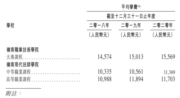 据招股书显示,华南职业教育在大湾区经营两所学校,分别为岭南职业技术学院及岭南现代技师学院。岭南职业技术学院分为广州校区和清远校区,提供大专课程;岭南现代技师学院为广州校区,提供中等、高等职业课程。