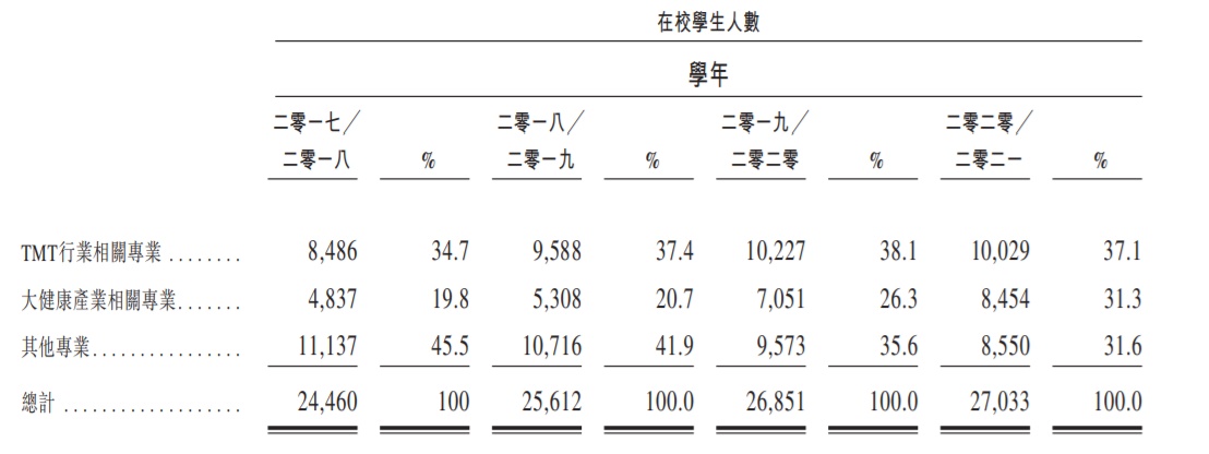 培养高素质技术技能型人才,是我国产业转型的基石,华南职业教育顺应国家战略发展趋势,聚焦于TMT及大健康等中国新兴产业。据招股书显示,华南职业教育以TMT行业及大健康产业为核心,这两个产业,正好是大湾区最缺人才的方向,即是社会中招聘需求最高的产业。弗若斯特沙利文表示,2019年时,TMT及大健康产业合计贡献了大湾区国内生产总值的63.8%,两个产业的迅速发展使得人才缺口大增,该年内人才缺口数高达330万。