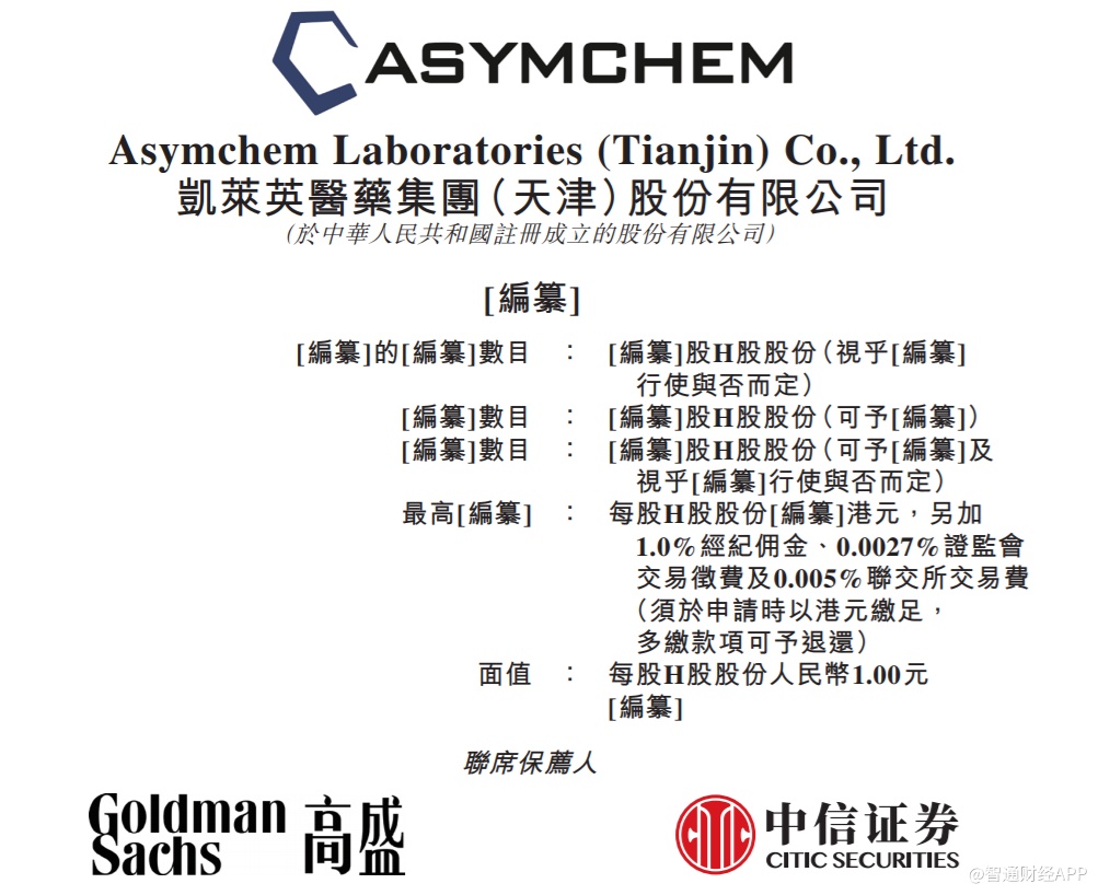 智通财经APP获悉,据港交所6月28日披露,凯莱英医药集团(天津)向港交所主板提交上市申请,高盛及中信证券为联席保荐人。
