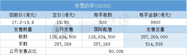 智通财经APP获悉,6月29日,奈雪的茶(02150)配售结束。配售招股价17.2-19.8港元,最终定价19.8港元,每手9900港元。