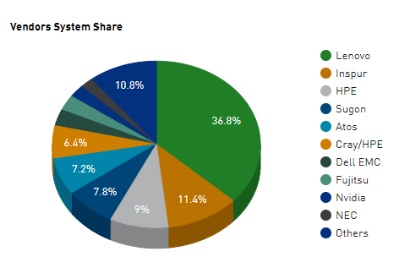 2021年6月29日,TOP500发布了最新的全球高性能计算TOP500榜单,联想集团再次蝉联榜单制造商份额第一,全球性能最强的500台高性能计算集群中,联想集团交付了184台,独占TOP500中36.8%的份额。