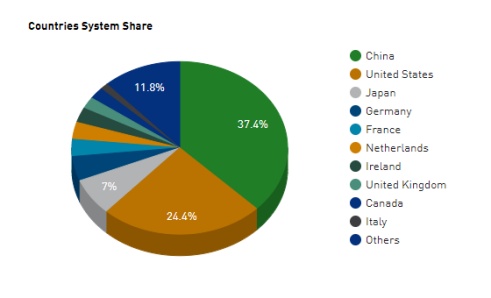 榜单显示,在TOP500高性能计算机中,中国客户部署了187台,数量继续位列全球第一,占总体份额超过37%;联想集团交付的高性能计算机贡献实际算力(Rmax)超过42.1亿亿次,位列全球第二。