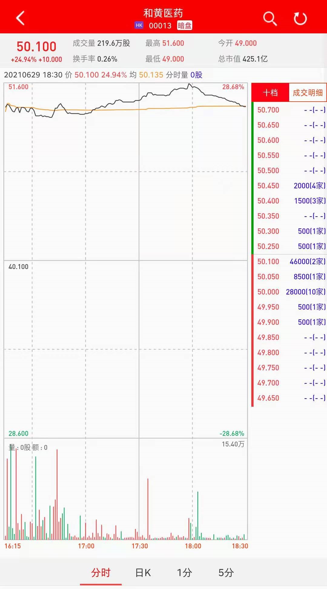 智通财经APP获悉,和黄医药(00013)将于6月30日(星期三)在香港挂牌。截至暗盘收盘,利弗莫尔证券暗盘交易显示报价50.10港元,较招股价40.1港元涨24.94%。每手500股,不计手续费,每手赚5000港元。