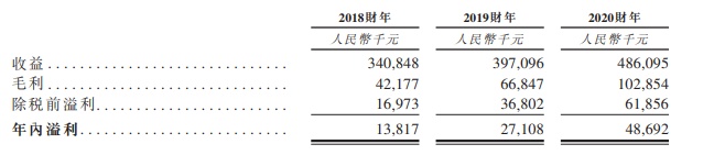 招股书显示,2018-2020年,润华物业的收入分别为3.4亿元(单位:人民币,下同)、3.97亿元和4.86亿元。年内盈利分别为1381.7万元、2710.8万元和4869.2万元。