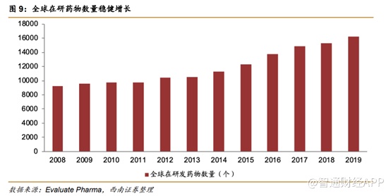 全球在研药物数量的稳健增长及研发费用的大幅增加为CDMO行业的快速发展奠定基础。