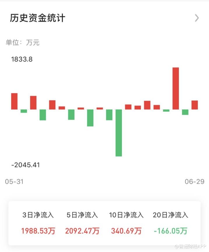 以行业龙头绿城管理控股为例,根据智通财经APP的统计,在过去5个交易日中,该公司净流入资金2092万元(以下单位等同),其中仅过去3日即净流入资金1988.53万元。