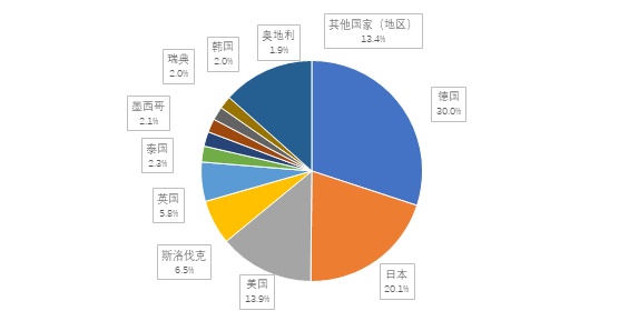 2021年1-5月,上述十国汽车商品累计进口金额356.2亿美元,占全部汽车商品进口总额的86.6%。