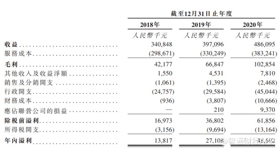 业绩方面,2018年至2020年,润华物业营收分别为3.4亿、3.97亿和4.86亿元,复合年增长率为19.6%;毛利润分别为4218万、6685万和1.02亿元,复合年增长率56%;净利润分别为1381万、2711万和4869万元,复合年增长率为87.8%。