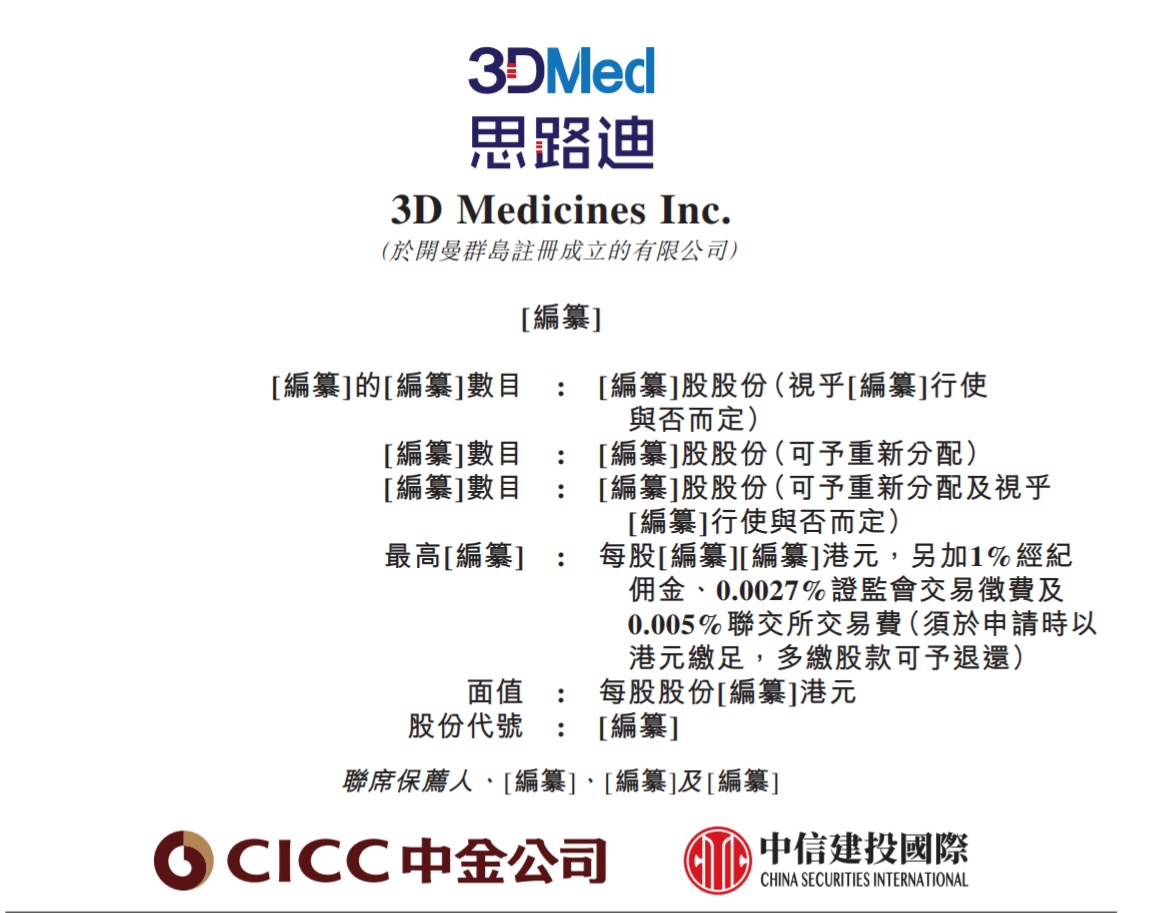 智通财经APP获悉,据港交所6月30日披露,3D Medicines Inc.(思路迪)向港交所主板递交上市申请,中金公司和中信建投国际为其联席保荐人。