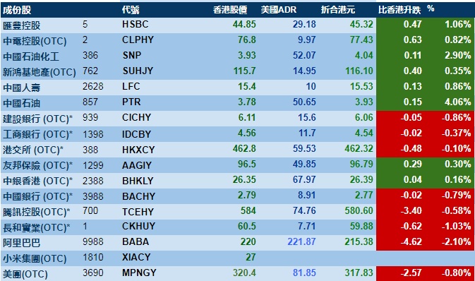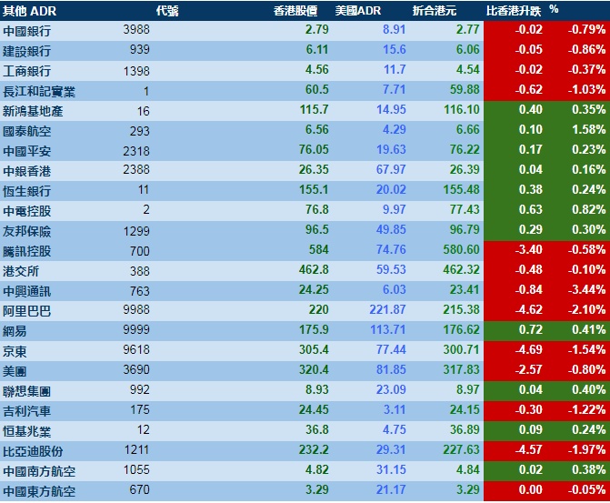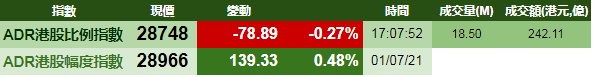 智通财经APP获悉,周四美股三大指数齐涨,港股ADR指数下跌,按比例计算,收报28748点,下跌78.89点或0.27%。