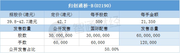智通财经APP获悉,7月2日,归创通桥-B(02190)配售结束。配售招股价为39.8-42.7港元,最终定价42.7港元,每手21350港元。