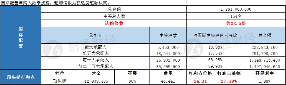 国际配售申购人数未披露,认购倍数约22.5倍。