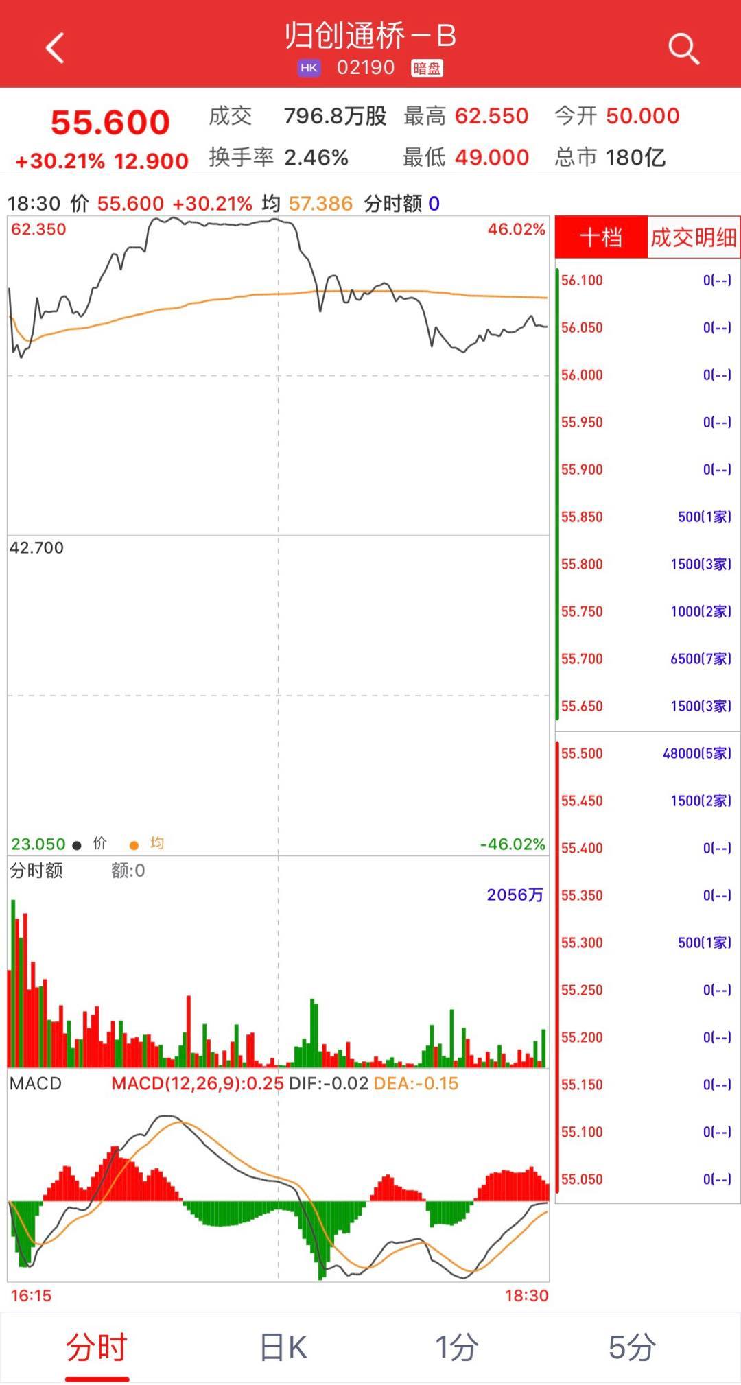 智通财经APP获悉,归创通桥-B(02190)将于7月5日(星期一)在香港挂牌。截至暗盘收盘,利弗莫尔证券暗盘交易显示报价55.6港元,较招股价42.7港元涨30.21%。每手500股,不计手续费,每手赚6450港元。