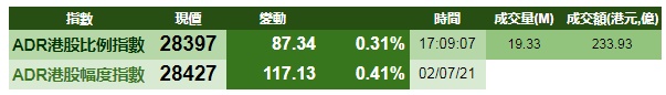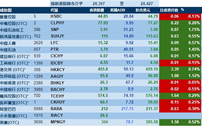 智通财经APP获悉,周五美股三大指数齐涨,港股ADR指数上扬,按比例计算,收报28397点,上涨87.34点或0.31%。