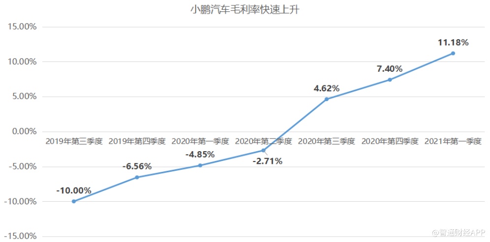 据智通财经APP了解,2021年一季度,小鹏的整车收入中首次确认了XPIOT软件收入,帮助小鹏汽车逐渐提升毛利水平,自2020年三季度公司毛利率转正(4.6%),在软件收入的带动下2021年一季度毛利率已达11.2%,盈利能力今非昔比。