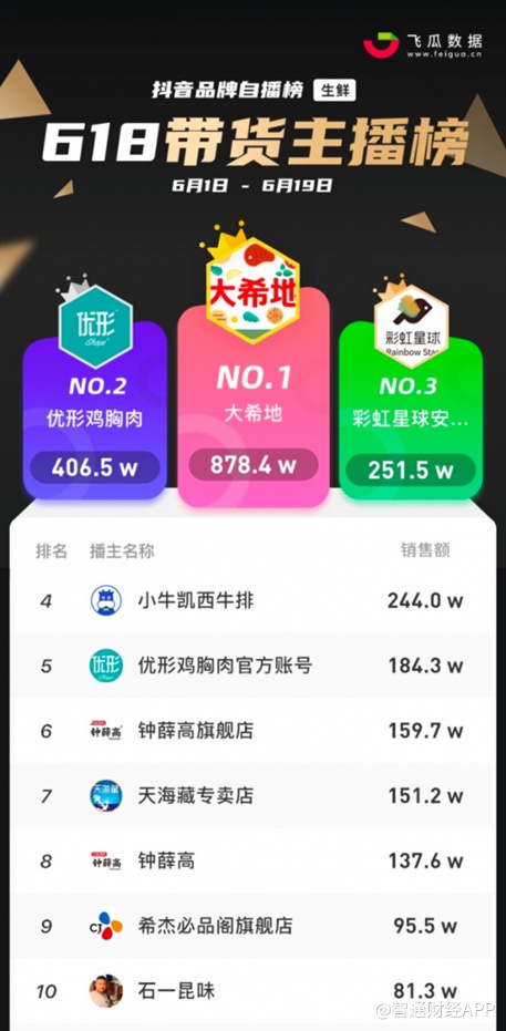 更为难得的是,在初涉618战事的抖音平台上,优形也跻身生鲜类目头部品牌。在抖音618生鲜类带货主播的TOP5名单上,优形旗下的直播间五占其二。可以说,作为鸡胸肉赛道的开创者和领军,优形已经大幅度甩开对手,以线上线下的绝对优势,改写了该市场几分天下的销售格局。