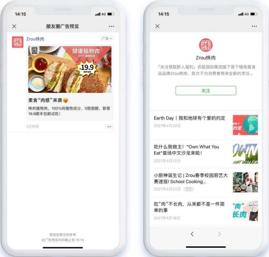 Zrou株肉以新人优惠券作为广告创意,通过投放目标客群引导用户获取优惠券,直跳活动页面,完成购买;同时,株肉也设置了加粉链路的广告投放路径,用户点击广告页面,以企微专享价的利益点,引导用户添加企微,沉淀到品牌私域,广告吸粉转化率达22.1%。