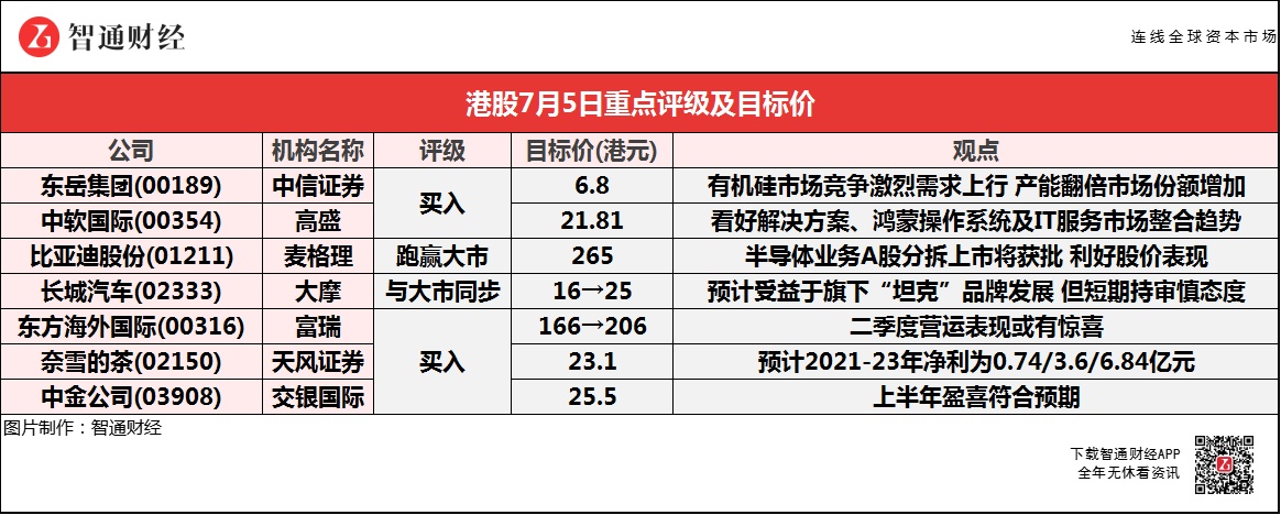 高盛称,看好中软国际(00354)整体解决方案、鸿蒙操作系统以及IT服务市场的整合趋势,目标价看高到21.81港元,投资评级升为建议买入;