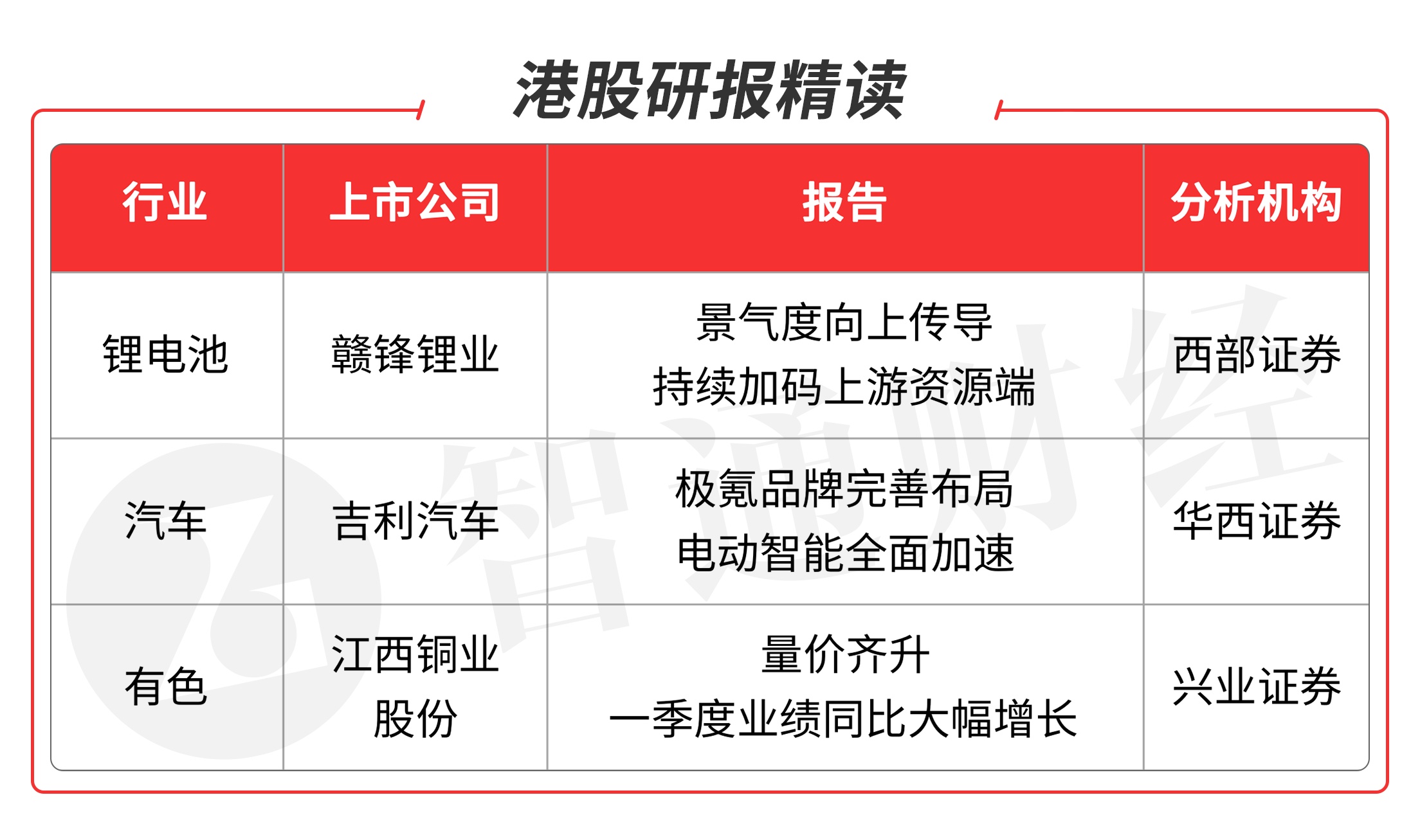 2、吉利汽车(00175):公司发布公告:为发展极氪品牌,极氪集团通过收购CEVT、浩瀚能源及认购宁波威睿,以及与吉致汽车金融合作,完善研发生产+三电+补能+金融的布局;截至2023.12.31的三个季度,吉致汽车金融将为极氪零售融资提供的年度上限分别为人民币 1.44 亿元、49.77 亿元、127.16 亿元。