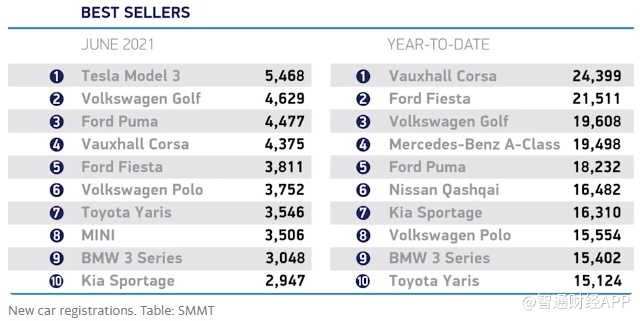 虽然特斯拉在6月份汽车销量榜中位居榜首,但它并没有进入今年迄今为止英国最畅销汽车的前10名。 沃克斯豪尔科萨(Vauxhall Corsa)和福特(F.US)嘉年华(Fiesta)仍是英国最受欢迎的车型。