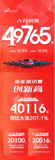 至此,比亚迪乘用车全系上半年总计销售242321辆,新能源则累计销售150211辆,6月的销量爆发可谓给上半年带来了完美的收官,DM车型的大受欢迎也给新能源汽车市场注入强心剂。