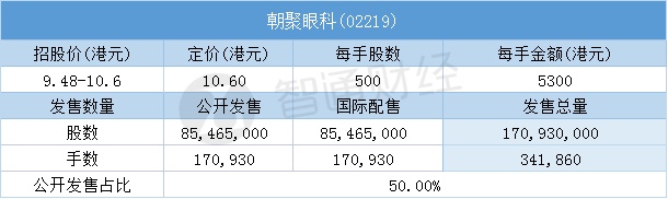 智通财经APP获悉,7月6日,朝聚眼科(02219)配售结束。配售招股价9.48-10.6港元,最终定价10.6港元,每手5300港元。