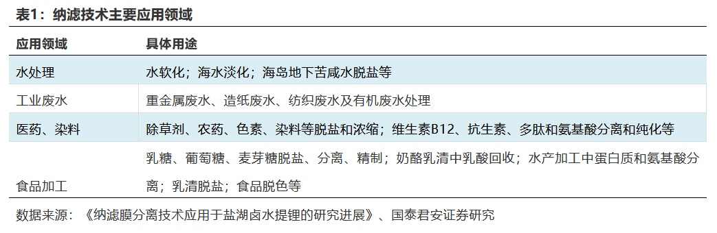 表1:纳滤技术主要应用领域